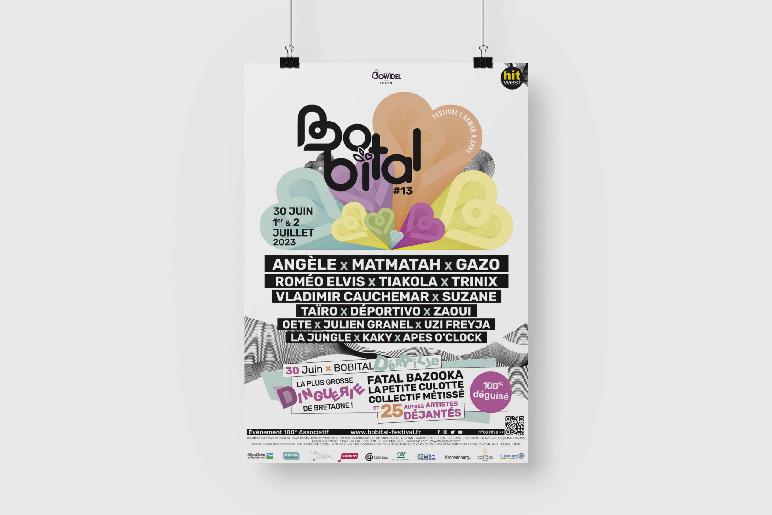 Au final on a un thème pour 2023 ! 😉 Jeu de formes, de couleurs, de perspectives et d’intensité dans cette affiche où la profusion de coeurs de toutes tailles rappelle la variété et l’intensité des styles musicaux et des groupes qui participent au Festival !